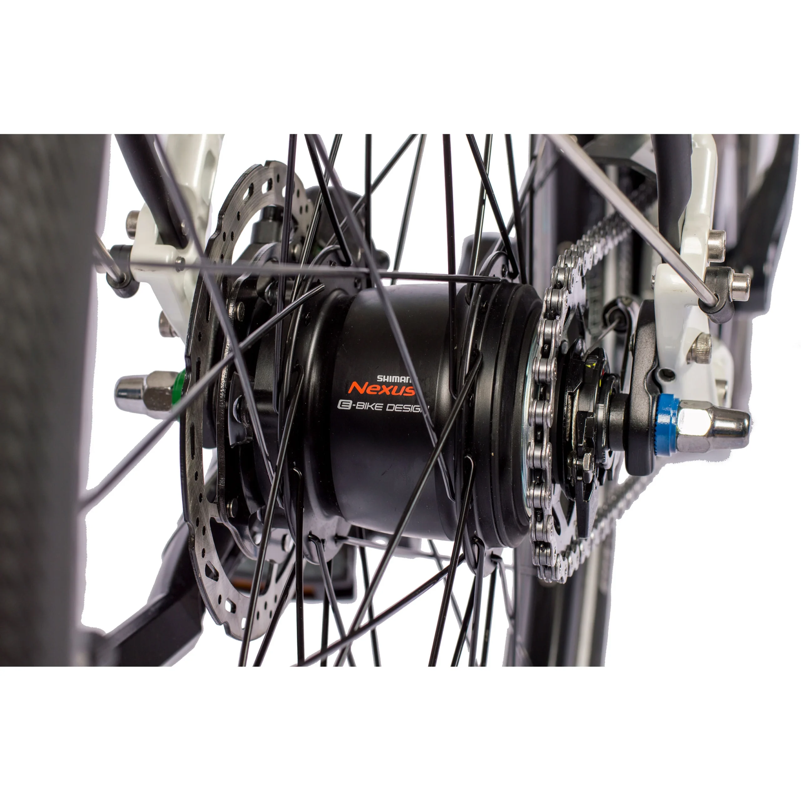 Das speziel für E-Bikes entwickelte 5-Gang-Schaltwerk SHIMANO NEXUS INTER gewhrleistet eine unkomplizierte und wartungsarme Gangschaltung. die besonders in stdtischen Umgebungen von Vorteil ist. Die Gnge sind przise abgestimmt. um eine mühelose Fortbewegung und Anpassung an unterschiedliche Geschwindigkeiten zu ermglichen.