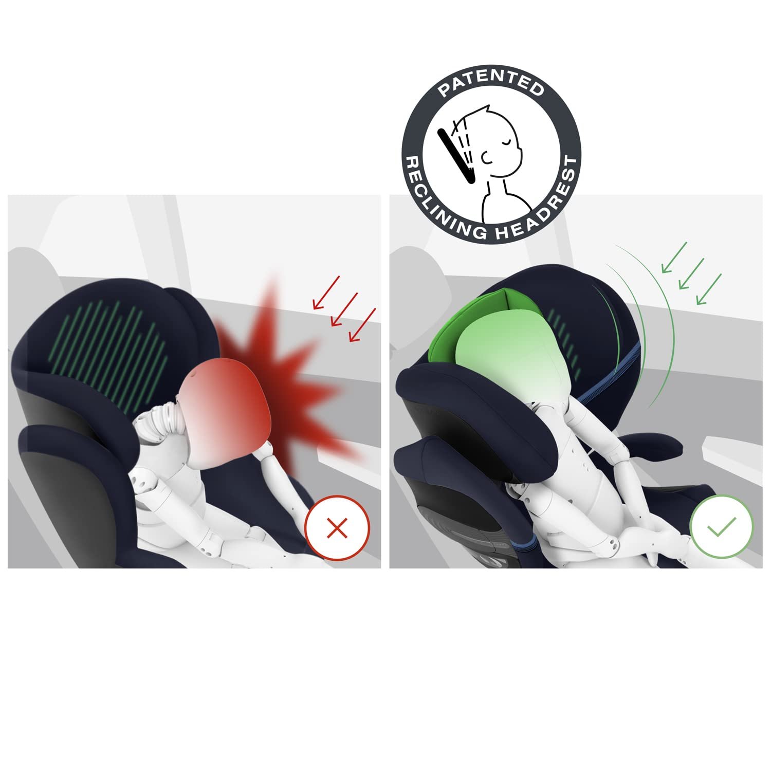 • Maximale Sicherheit – Integrierter Seitenaufprallschutz (L.S.P. System). Neigungsverstellbare Kopfstütze. Energieabsorbierende Schale