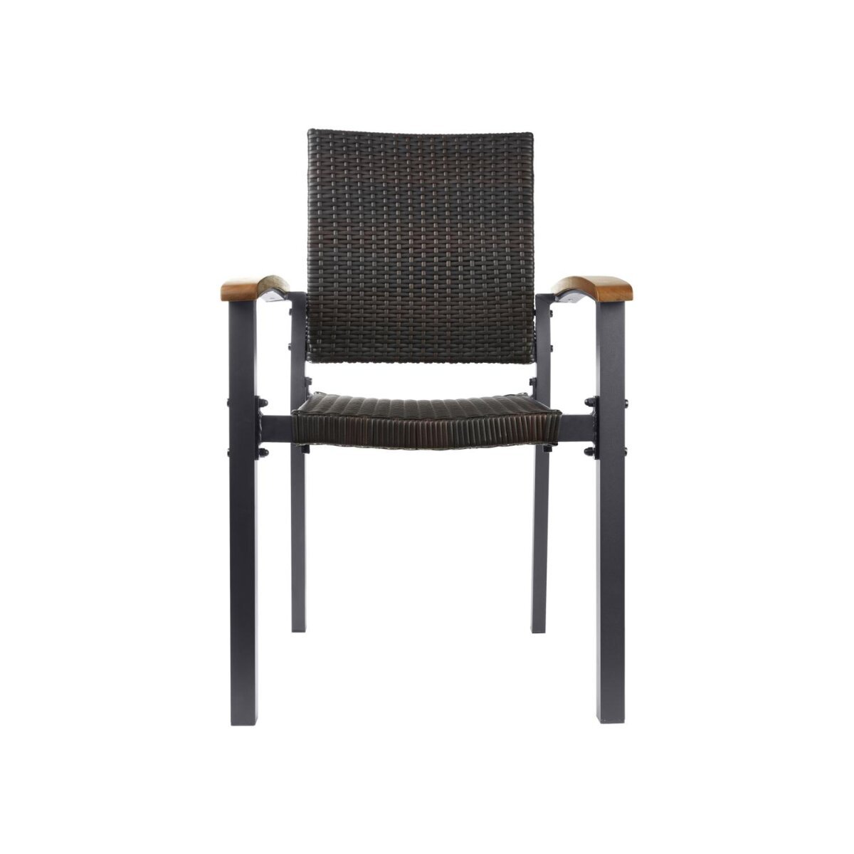 • Elastisches. doppelseitiges PE-Rattan Geflecht. Holz-Armlehnen und pulverbeschichteter Stahlrahmen